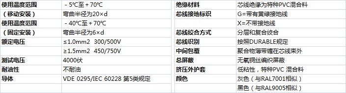 技術(shù)參數(shù)JoY拖鏈電纜-卷筒電纜-高柔性坦克鏈電纜廠家