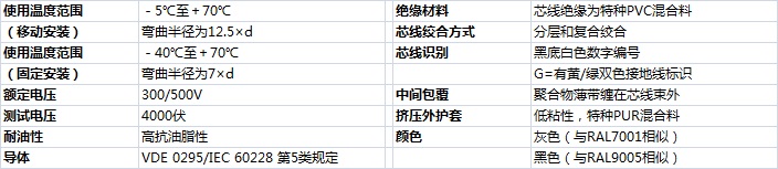 加強(qiáng)型耐油和冷卻液PUR護(hù)套數(shù)字芯線柔性控制電纜