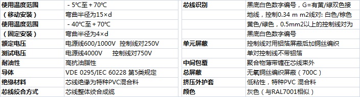 技術參數(shù)0fC拖鏈電纜-卷筒電纜-高柔性坦克鏈電纜廠家