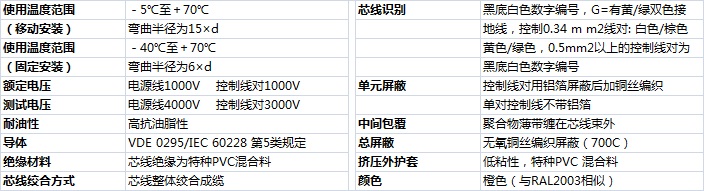 技術參數(shù)AKU拖鏈電纜-卷筒電纜-高柔性坦克鏈電纜廠家