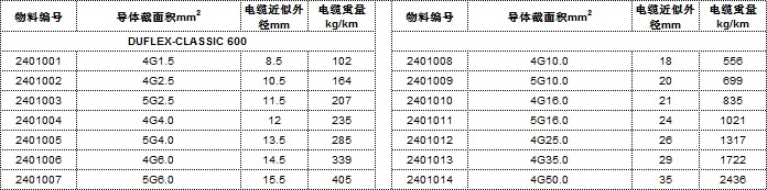 電纜規(guī)格