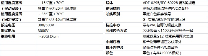 技術參數(shù)Wcb拖鏈電纜-卷筒電纜-高柔性坦克鏈電纜廠家