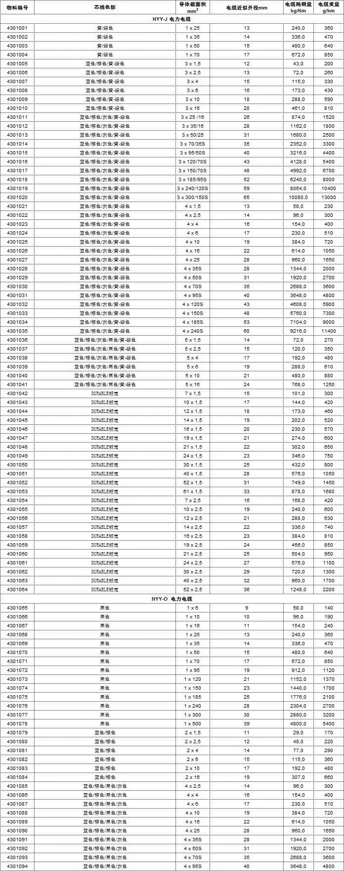 電纜規(guī)格