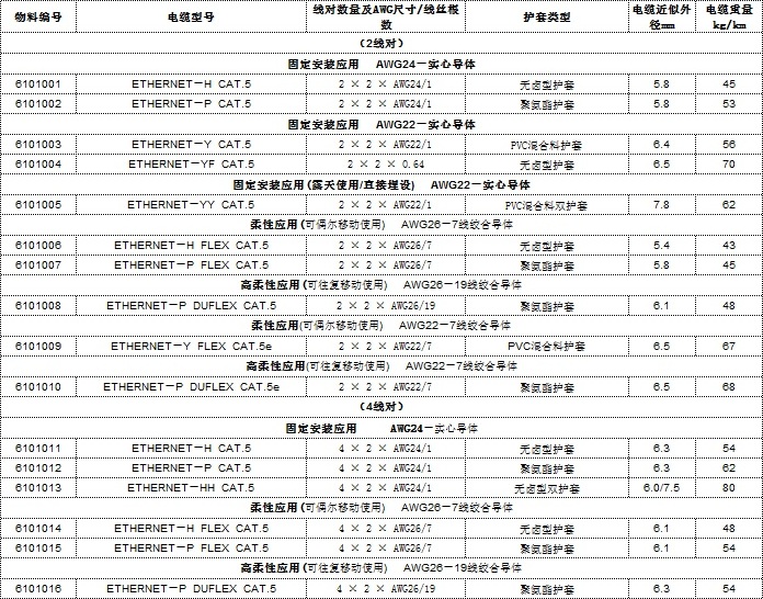 ETHERNET CAT.5/CAT.5E/FLEX CAT.5/FLEX CAT.5E